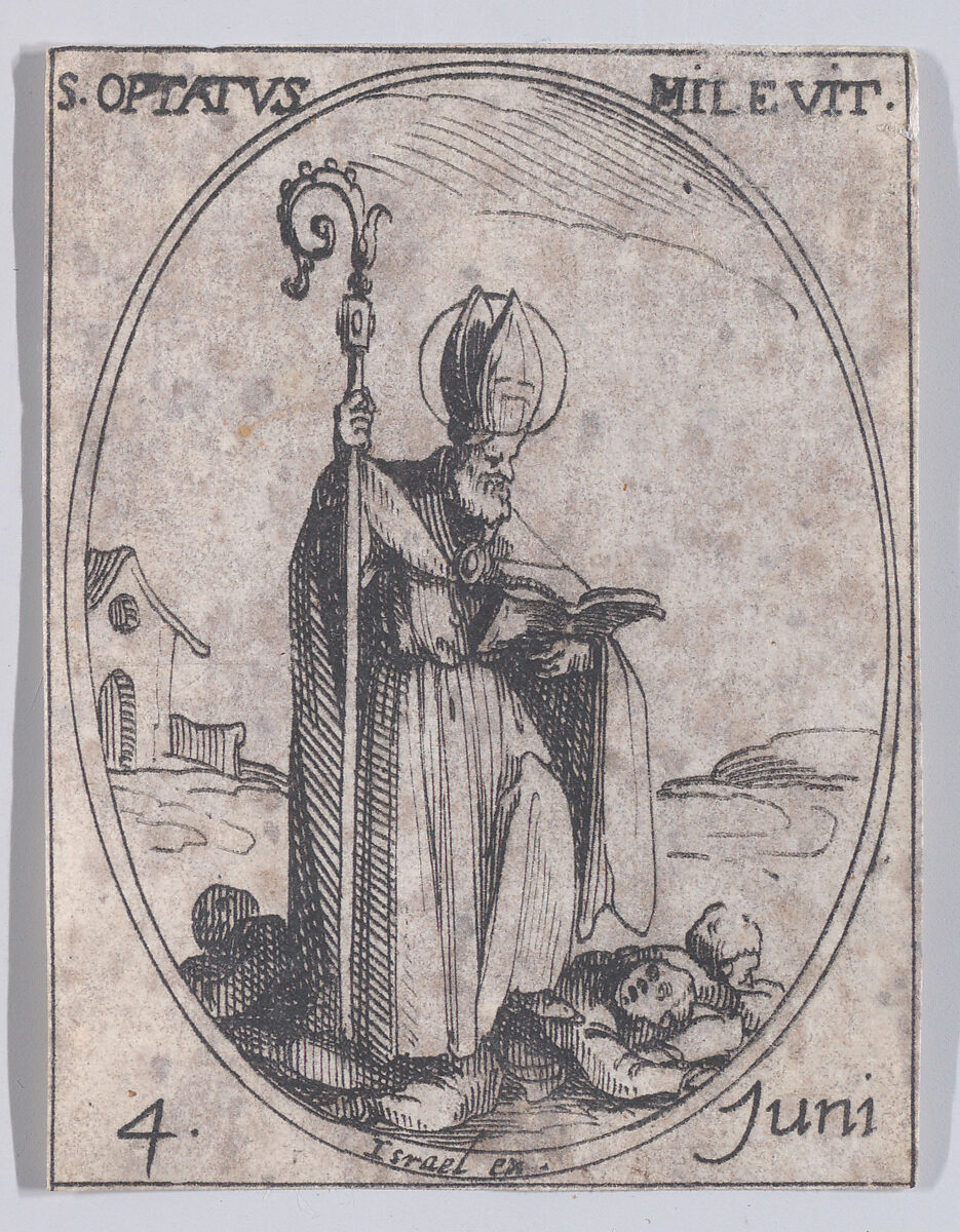 - Title: S. Optat de Milève (St. Optatus of Milevis), June 4th, from "Les Images De Tous Les Saincts et Saintes de L'Année" (Images of All of the Saints and Religious Events of the Year)