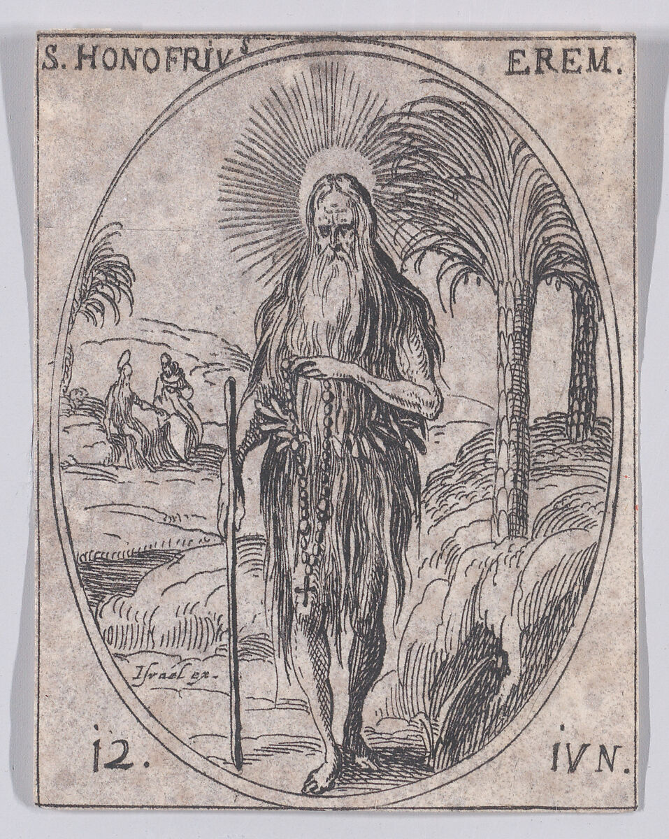 - Title: S. Honufre, ermite (St. Onouphrius, Hermit), June 12th, from "Les Images De Tous Les Saincts et Saintes de L'Année" (Images of All of the Saints and Religious Events of the Year)