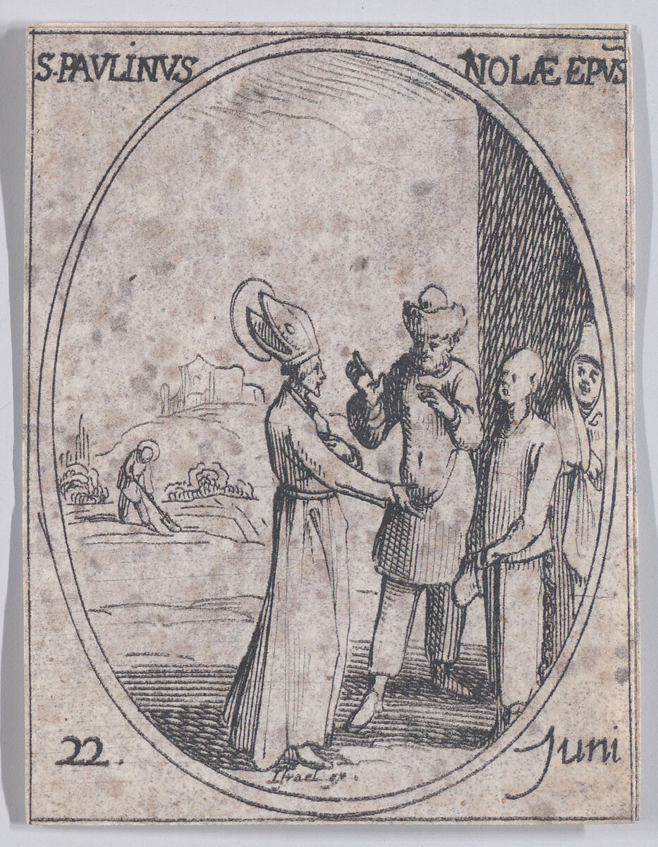 - Title:S. Paulin, évêque de Nole (St. Paulinas, Bishop of Nolas), June 22nd, from "Les Images De Tous Les Saincts et Saintes de L'Année" (Images of All of the Saints and Religious Events of the Year)