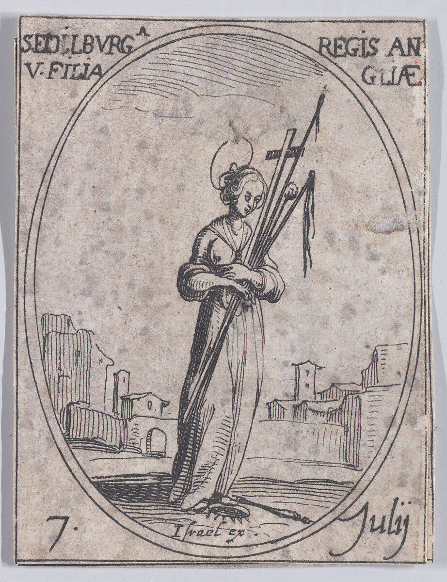 - Title:Ste. Edilburge, fille du roi d'Angleterre (St. Ethelburga, Daughter of the King of England), July 7th, from "Les Images De Tous Les Saincts et Saintes de L'Année" (Images of All of the Saints and Religious Events of the Year)