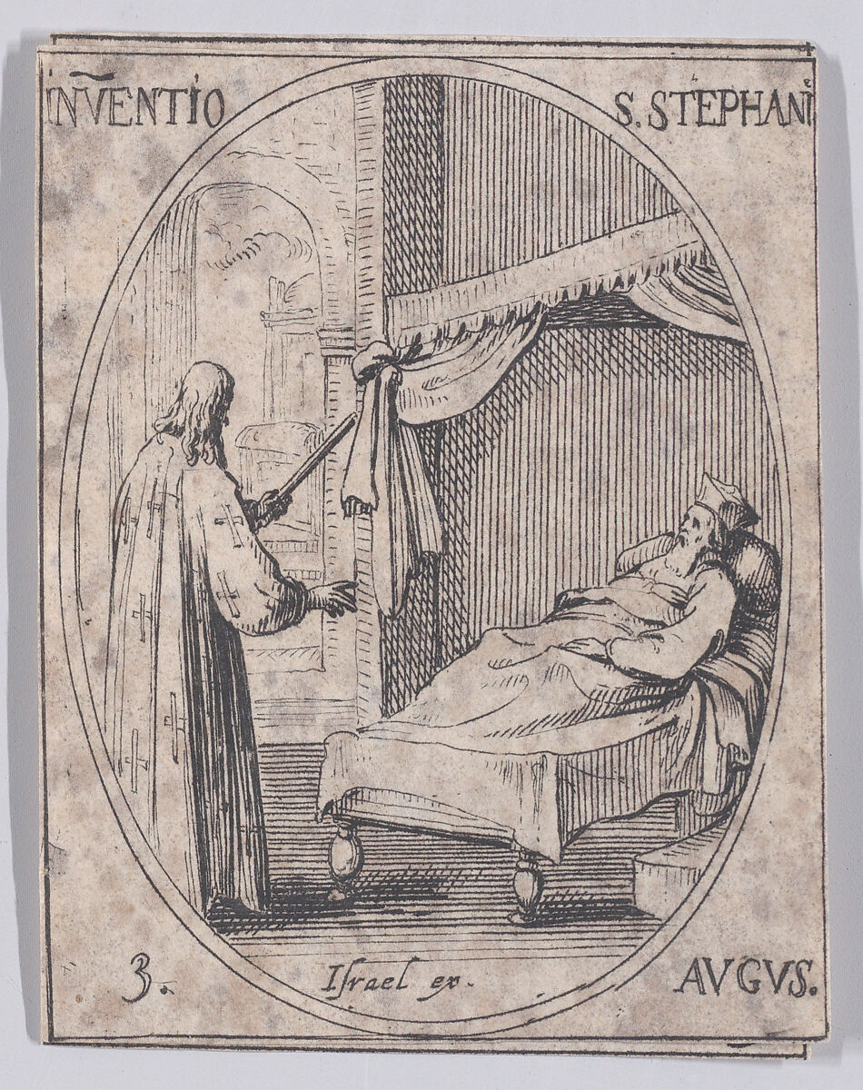 - Title: La Découverte du Corps de Saint Etienne (The Discovery of the Relics of St. Stephen), August 3rd, from "Les Images De Tous Les Saincts et Saintes de L'Année" (Images of All of the Saints and Religious Events of the Year)