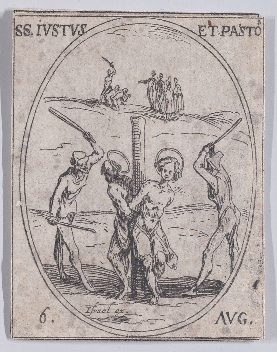 - Title: S. Juste et S. Pastor (St. Justus and St. Pastor), August 6th, from "Les Images De Tous Les Saincts et Saintes de L'Année" (Images of All of the Saints and Religious Events of the Year)