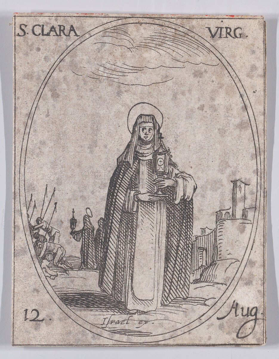 - Title:Ste. Claire, vierge (St. Clare, Virgin), August 12th, from "Les Images De Tous Les Saincts et Saintes de L'Année" (Images of All of the Saints and Religious Events of the Year)