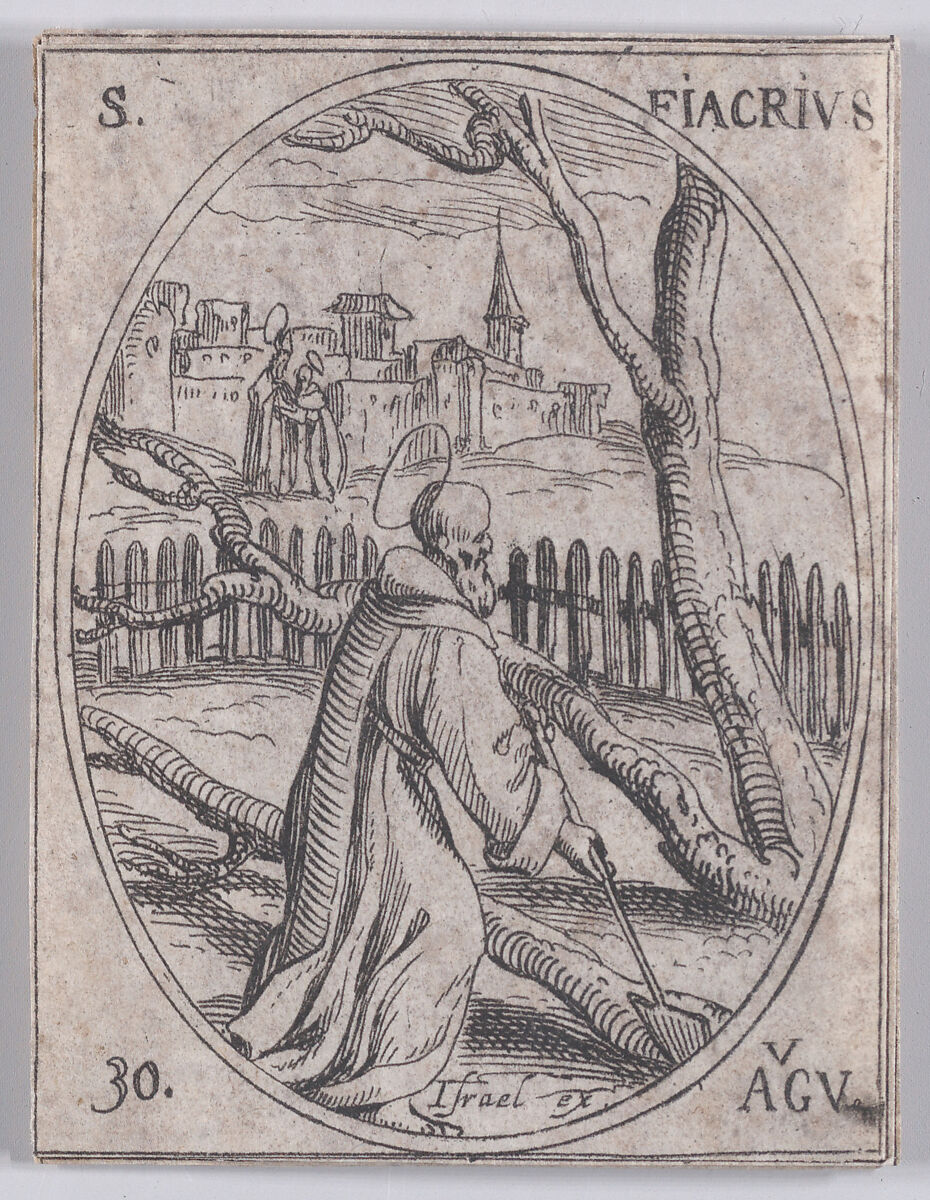 - Title:St. Fiacre, August 30th, from "Les Images De Tous Les Saincts et Saintes de L'Année" (Images of All of the Saints and Religious Events of the Year)