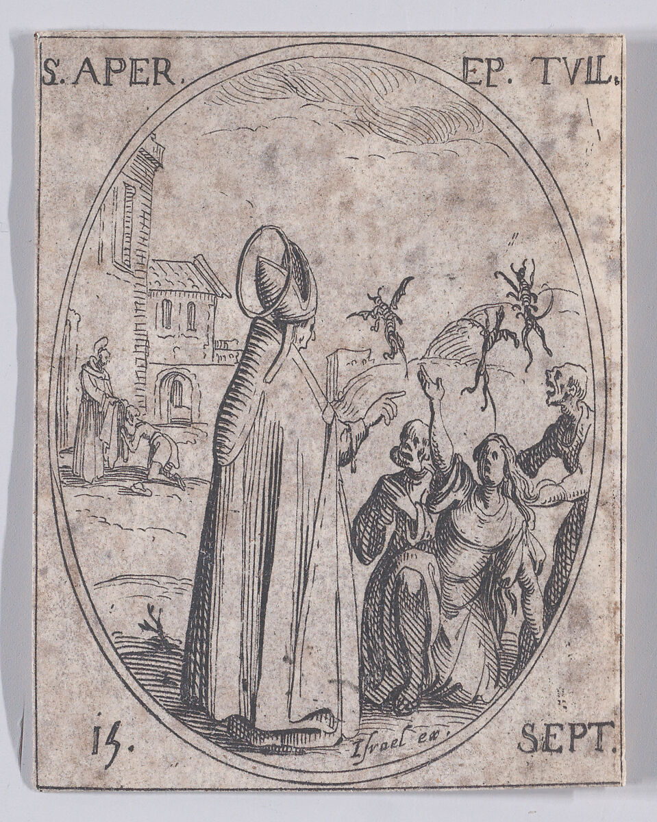 - Title:S. Apre, évêque de Toul (St. Aper (Aprus), Bishop of Toul), September 15th, from "Les Images De Tous Les Saincts et Saintes de L'Année" (Images of All of the Saints and Religious Events of the Year)