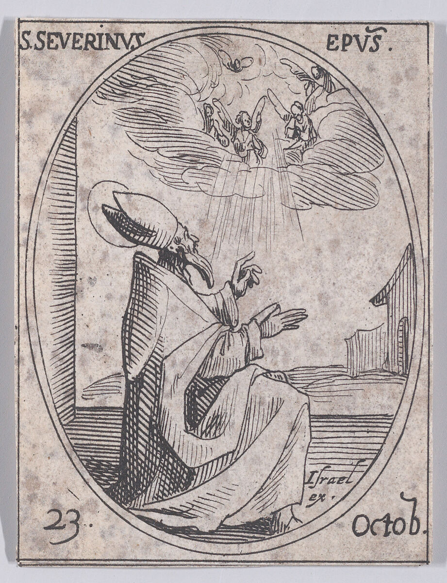- Title:S. Séverin, évêque (St. Severinus, Bishop), October 23rd, from "Les Images De Tous Les Saincts et Saintes de L'Année" (Images of All of the Saints and Religious Events of the Year)