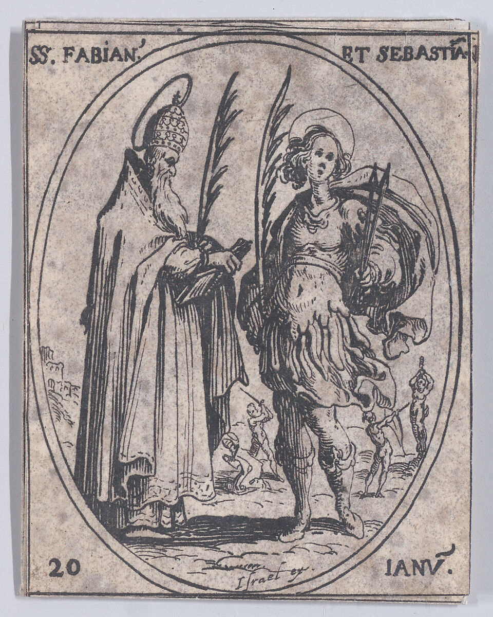 - Title: S. Fabien et S. Sébastien (St. Fabian and St. Sebastian), January 20th, from "Les Images De Tous Les Saincts et Saintes de L'Année" (Images of All of the Saints and Feast Days of the Year)
