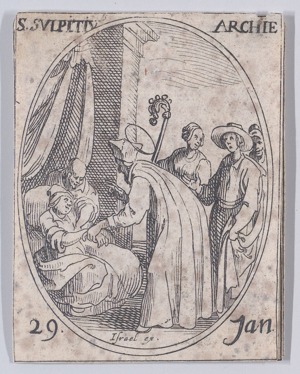 - Title: S. Sulpice, archevêque (St. Sulpitius, Archbishop), January 29th, from "Les Images De Tous Les Saincts et Saintes de L'Année" (Images of All of the Saints and Feast Days of the Year)