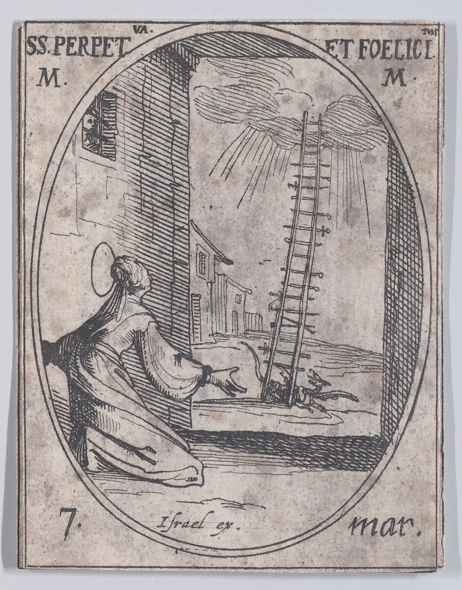 - Title:Ste. Perpétue et Ste. Félicité, martyres (St. Perpetua and St. Felicita, Martyrs), March 7th, from "Les Images De Tous Les Saincts et Saintes de L'Année" (Images of All of the Saints and Religious Events of the Year)