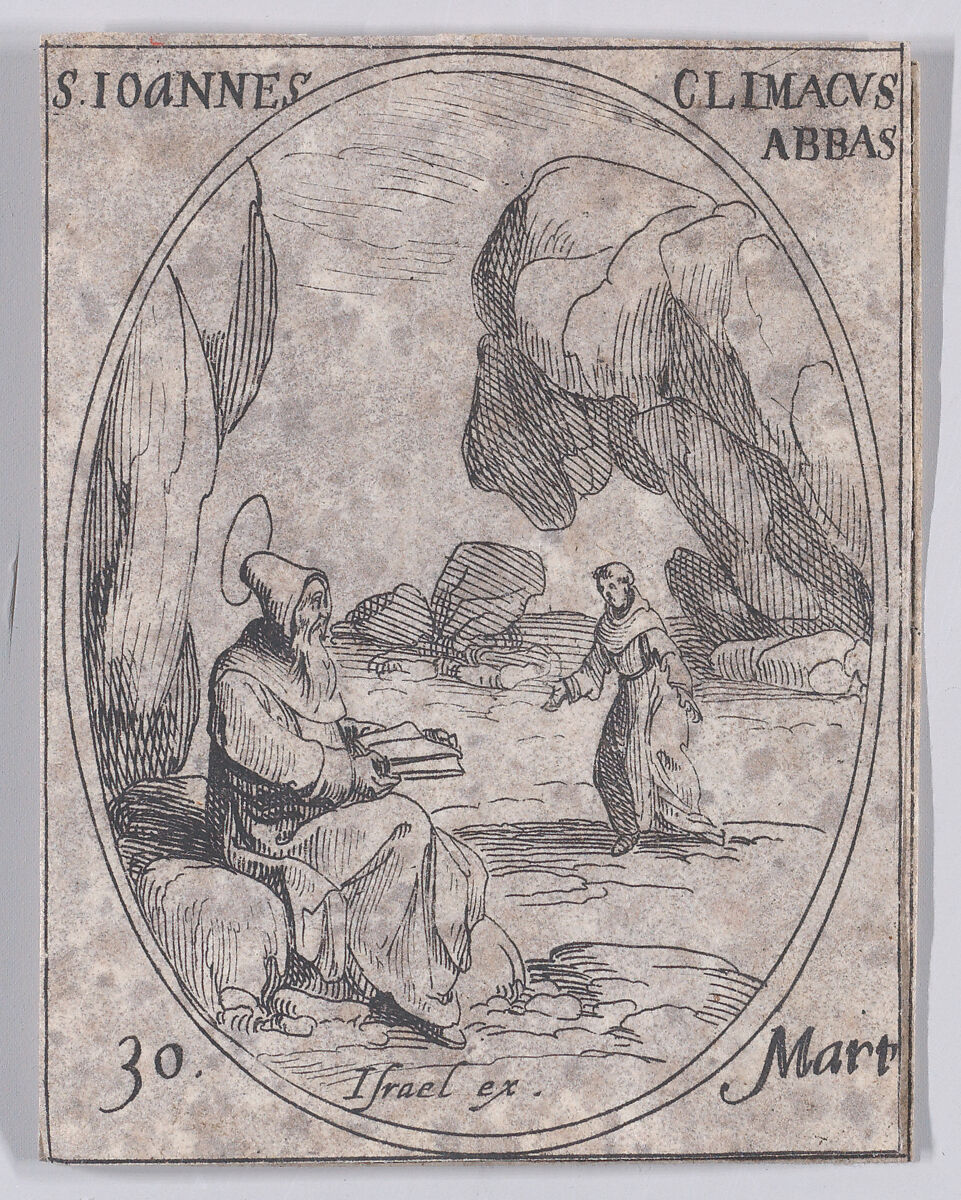 - Title:S. Jean Climaque, abbé (St. John Climaticus, Abbot), March 30th, from "Les Images De Tous Les Saincts et Saintes de L'Année" (Images of All of the Saints and Religious Events of the Year)