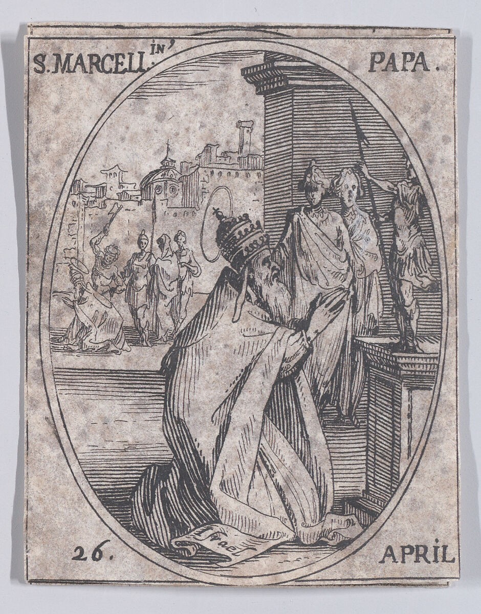 - Title: S. Marcellin, pape (St. Marcellinus, Pope), April 26th, from "Les Images De Tous Les Saincts et Saintes de L'Année" (Images of All of the Saints and Religious Events of the Year)