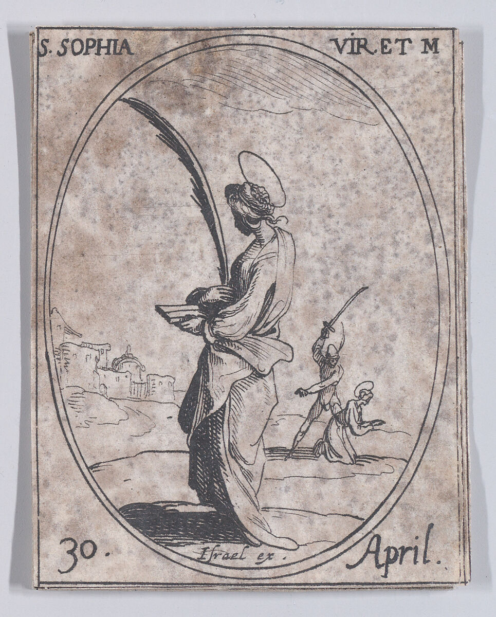 - Title: Ste. Sophie, vierge et martyre (St. Sophia, Virgin and Martyr), April 30th, from "Les Images De Tous Les Saincts et Saintes de L'Année" (Images of All of the Saints and Religious Events of the Year)