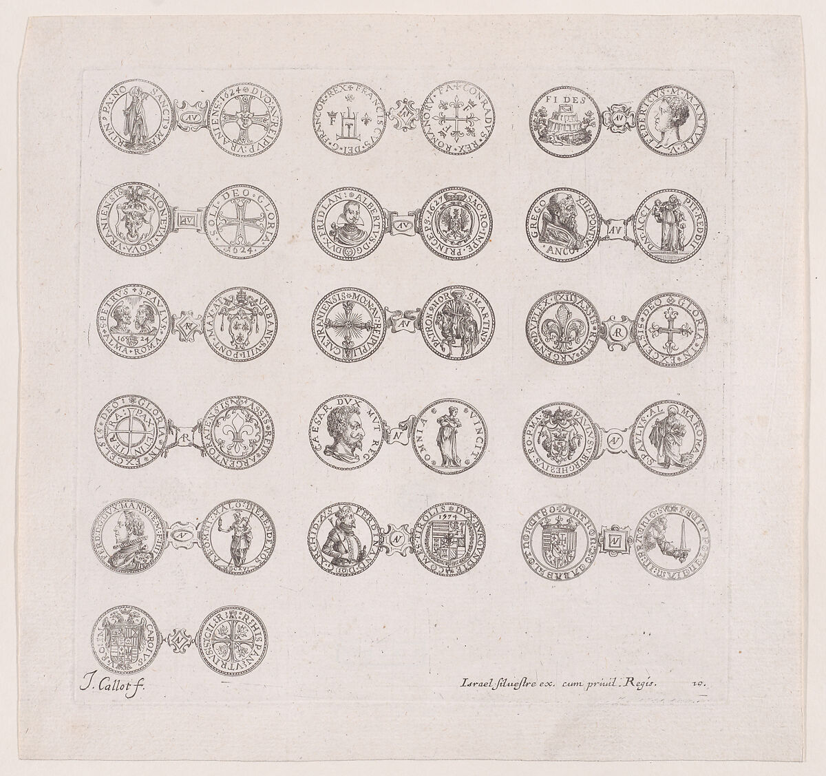 Plate 10, Featuring 16 Coins Issued by European Princes in the 16th and 17th centuries, from "Les Monnaies" (The Currencies)