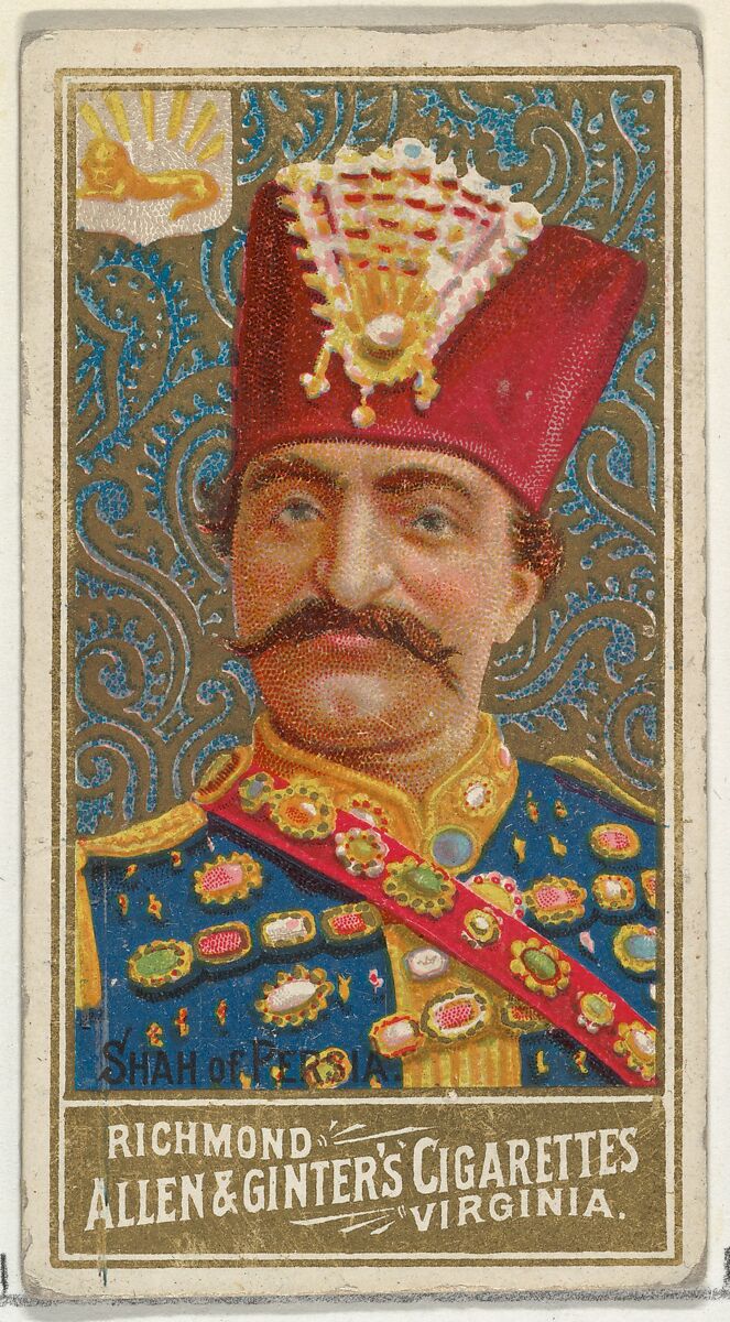 - Title:Shah of Persia, from World's Sovereigns series (N34) for Allen & Ginter Cigarettes