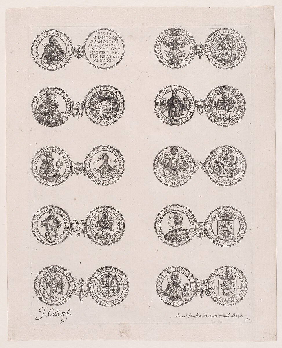 - Title: Plate 4, Featuring 10 Coins Issued by European Princes in the 16th and 17th centuries, from "Les Monnaies" (The Currencies)