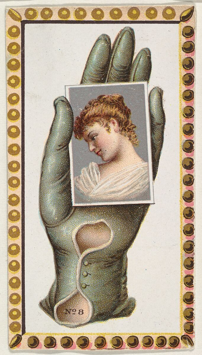 Card Number 8, cut-out from banner advertising the Opera Gloves series (G29) for Allen & Ginter Cigarettes