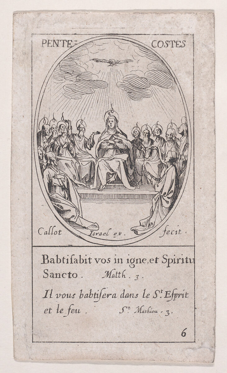 - Title: La Pentecôte (The Pentecost), scene 6 from Images des Fêtes Mobiles (Images of Moveable Feasts from the Christian Calendar), part of "Les Images De Tous Les Saincts et Saintes de L'Année" (Images of All of the Saints and Religious Events of the Year)