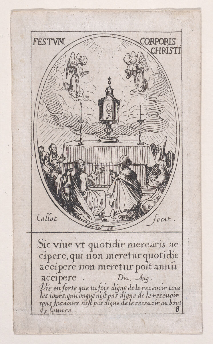 - Title:Le Saint-Sacrement de l'autel (The Holy Sacrament of the Altar), Feast of Corpus Christi, scene 8 from Images des Fêtes Mobiles (Images of Moveable Feasts from the Christian Calendar), part of "Les Images De Tous Les Saincts et Saintes de L'Année" (Images of All of the Saints and Religious Events of the Year)