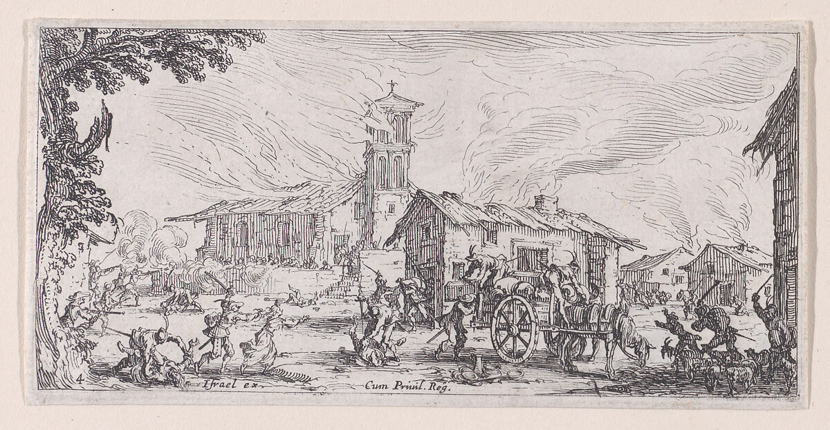 - Title: Pillage et Incendie d'un Village (Looting and Burning of a Village), plate 4 from "Les Petites Misères de la Guerre" (The Little Miseries of War)