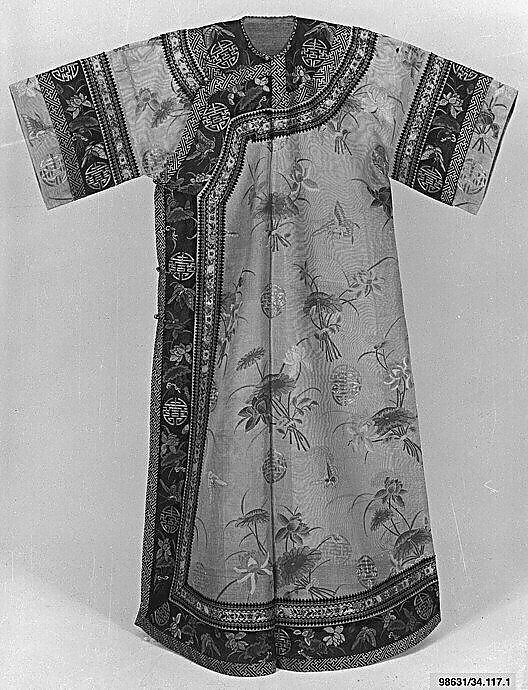 The lightweight gauze foundation cloth and the pattern of lotus flowers with butterflies indicate that this robe was meant to be worn in summer.