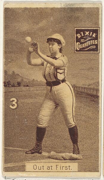 - Title: Card 3, Out at First, from the series "Women Baseball Players" (N508), issued by Pacholder Tobacco to promote Dixie Cigarettes
