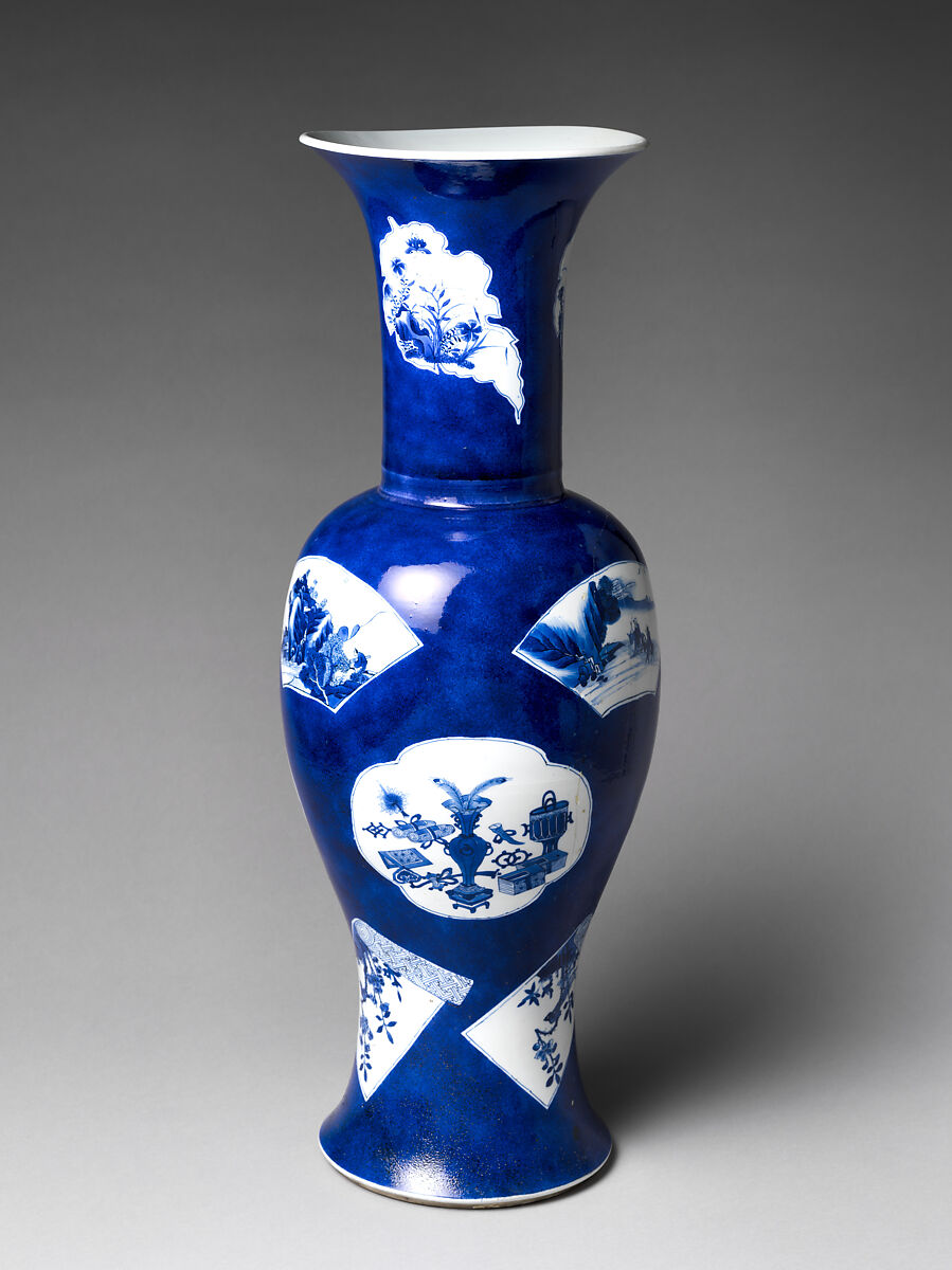 - Medium:Porcelain covered with powdered blue glaze and painted with cobalt blue under transparent glaze (Jingdezhen ware)