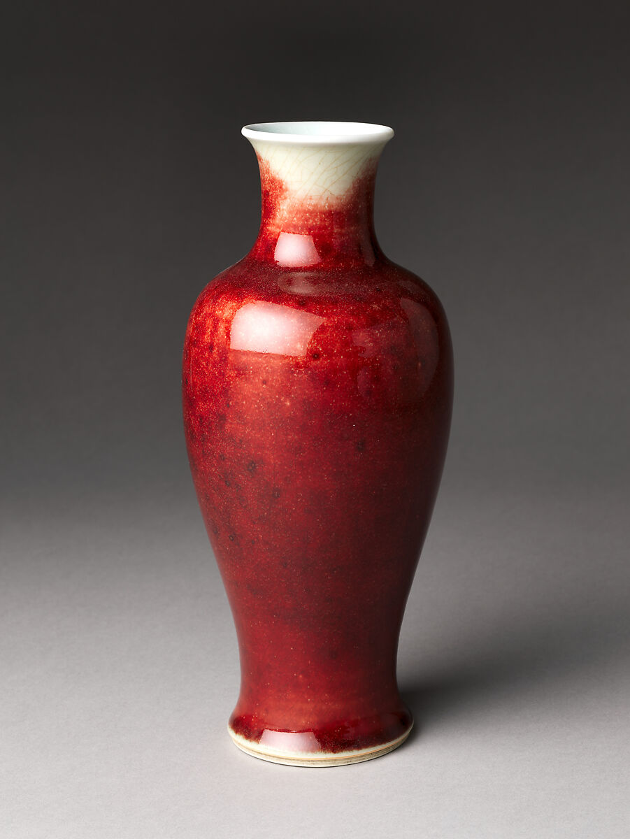 - Medium: Porcelain with ox-blood glaze (Jingdezhen ware)