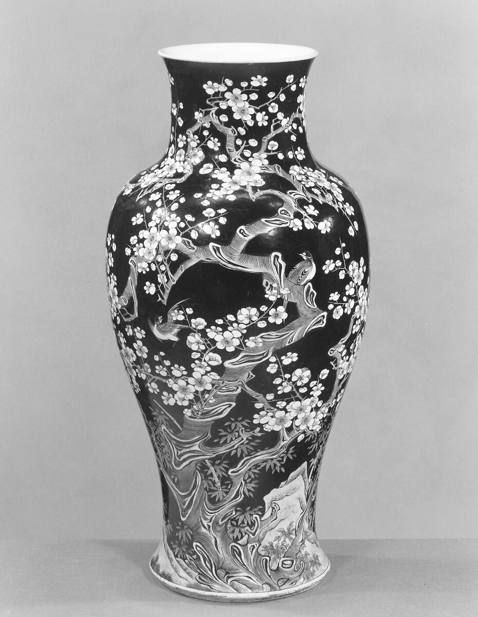 - Medium: Porcelain painted in polychrome enamels on black ground (Jingdezhen famille noire ware)