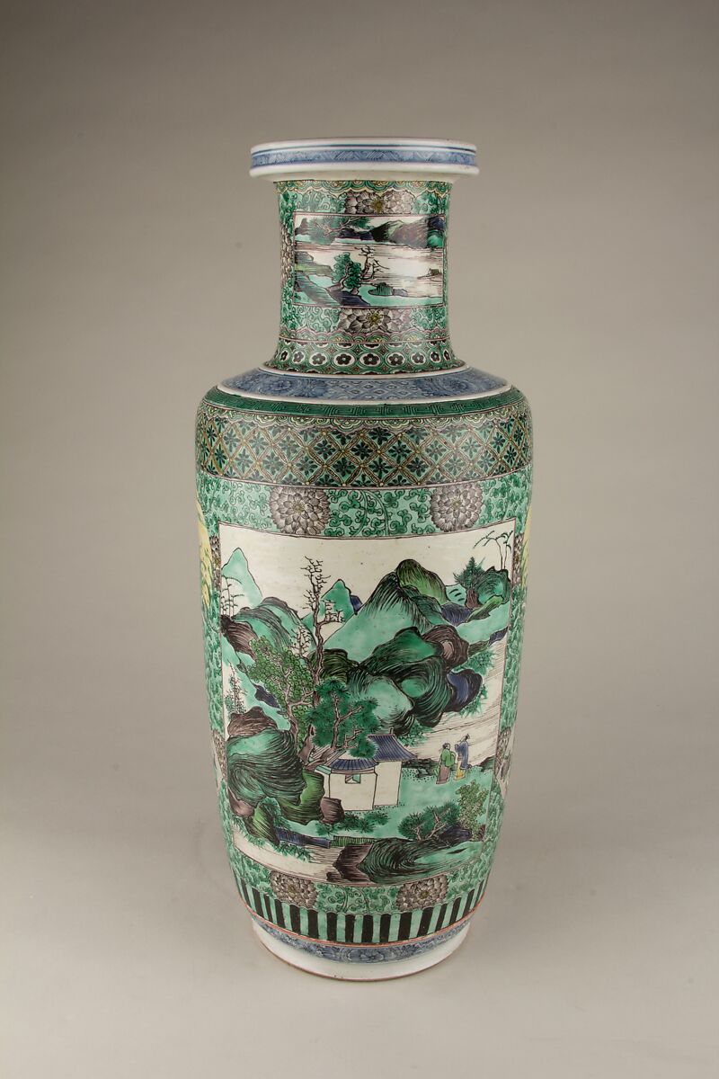 - 清康熙 景德鎮窯五彩山水棒槌瓶