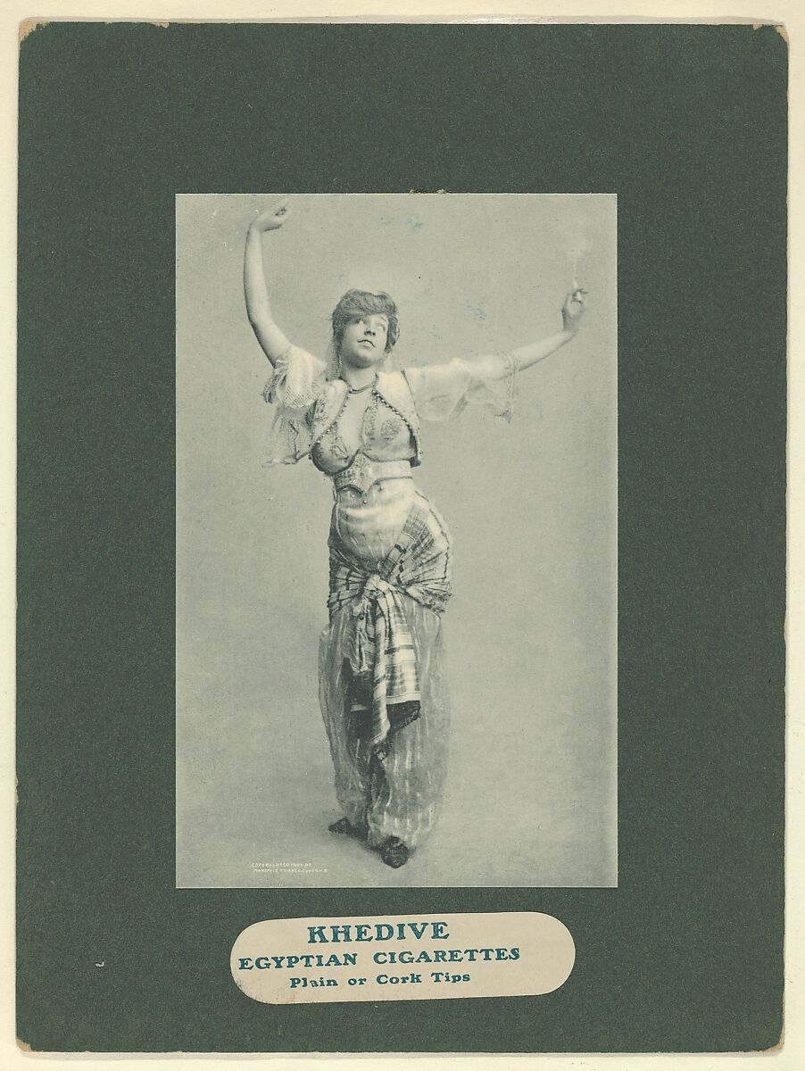 Cigarette cards from the Little Egypt Actresses series (T2), Issued in 1902 by Monopole Tobacco Works to promote Khedive Egyptian Cigarettes.