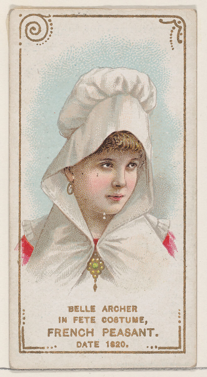 - Title: Belle Archer in Fete Costume of French Peasant of 1820, from the set Actors and Actresses, First Series (N70) for Duke brand cigarettes