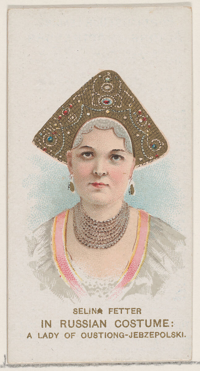 - Title: Selina Fetter in Russian Costume of a Lady of Oustiong-Jebzepolski, from the set Actors and Actresses, First Series (N70) for Duke brand cigarettes