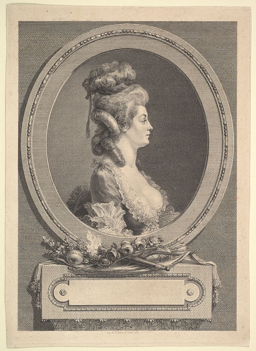 According to Bocher his portrait is most likely of Augustin de Saint-Aubin's wife, Louise, who would have been 37 in 1779.