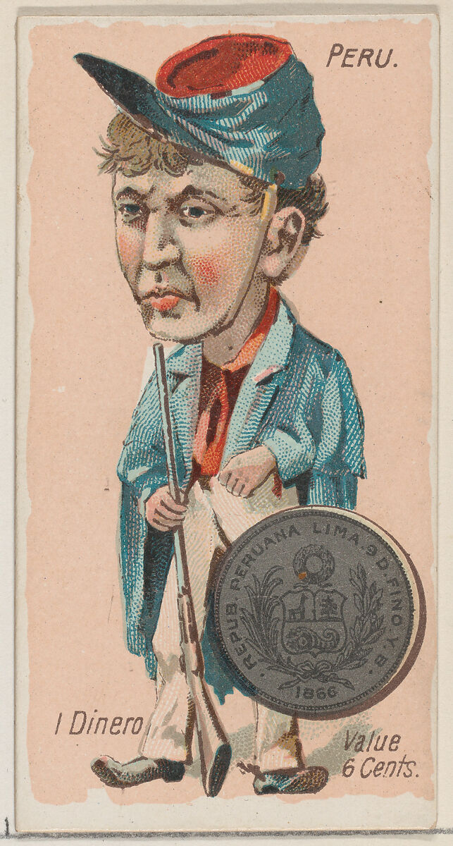 - Title:Peru, 1 Dinero, from the series Coins of All Nations (N72, variation 2) for Duke brand cigarettes