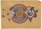 Vertical Panel with Circular Design of Alternating Purple and Blue Stripes with a Gold Circle at Center, from a group of 158 textile designs from an unidentified French designer. The designs include brightly colored patterns and single motifs in late Art Nouveau and Art Deco styles. Most designs have been made on tracing paper and show signs of transfer. Some include instructions for execution, written in French.