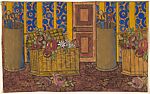 Repetitive Pattern with a Door, an Umbrella Stand, and a Basket of Flowers, from a group of 158 textile designs from an unidentified French designer. The designs include brightly colored patterns and single motifs in late Art Nouveau and Art Deco styles. Most designs have been made on tracing paper and show signs of transfer. Some include instructions for execution, written in French.