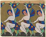 Horizontal Panel with Three Daisies Grouped at Center, from a group of 158 textile designs from an unidentified French designer. The designs include brightly colored patterns and single motifs in late Art Nouveau and Art Deco styles. Most designs have been made on tracing paper and show signs of transfer. Some include instructions for execution, written in French.