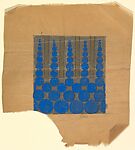 Panel with Five Towers of Blue Circles and Four Gold Rectangles, from a group of 158 textile designs from an unidentified French designer. The designs include brightly colored patterns and single motifs in late Art Nouveau and Art Deco styles. Most designs have been made on tracing paper and show signs of transfer. Some include instructions for execution, written in French.