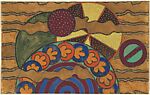 Horizontal Panel with Five Overlapping Circles of Different Designs, Interwoven with Horizontal Ribbons, from a group of 158 textile designs from an unidentified French designer. The designs include brightly colored patterns and single motifs in late Art Nouveau and Art Deco styles. Most designs have been made on tracing paper and show signs of transfer. Some include instructions for execution, written in French.