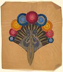 Vertical Panel with Decorative Palmette and Two Swans at Center, from a group of 158 textile designs from an unidentified French designer. The designs include brightly colored patterns and single motifs in late Art Nouveau and Art Deco styles. Most designs have been made on tracing paper and show signs of transfer. Some include instructions for execution, written in French.