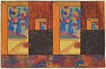 Horizontal Panel with Pattern of Rectangular Windows Showing Hanging Fruit Plants and Landscapes, from a group of 158 textile designs from an unidentified French designer. The designs include brightly colored patterns and single motifs in late Art Nouveau and Art Deco styles. Most designs have been made on tracing paper and show signs of transfer. Some include instructions for execution, written in French.