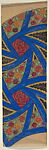 Horizontal Panel Divided into Sections by Radiating Blue Lines with Decorative Roses at Center and Gold Bands with Flowers, from a group of 158 textile designs from an unidentified French designer. The designs include brightly colored patterns and single motifs in late Art Nouveau and Art Deco styles. Most designs have been made on tracing paper and show signs of transfer. Some include instructions for execution, written in French.