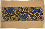 Frieze with Blue Crescents and Gold Circles on a Yellow Background, from a group of 158 textile designs from an unidentified French designer. The designs include brightly colored patterns and single motifs in late Art Nouveau and Art Deco styles. Most designs have been made on tracing paper and show signs of transfer. Some include instructions for execution, written in French.