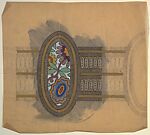 Horizontal Panel with a View of Decorative Flowers in an Oval Frame, Between a Two-Layered Horizontal Band, from a group of 158 textile designs from an unidentified French designer. The designs include brightly colored patterns and single motifs in late Art Nouveau and Art Deco styles. Most designs have been made on tracing paper and show signs of transfer. Some include instructions for execution, written in French.