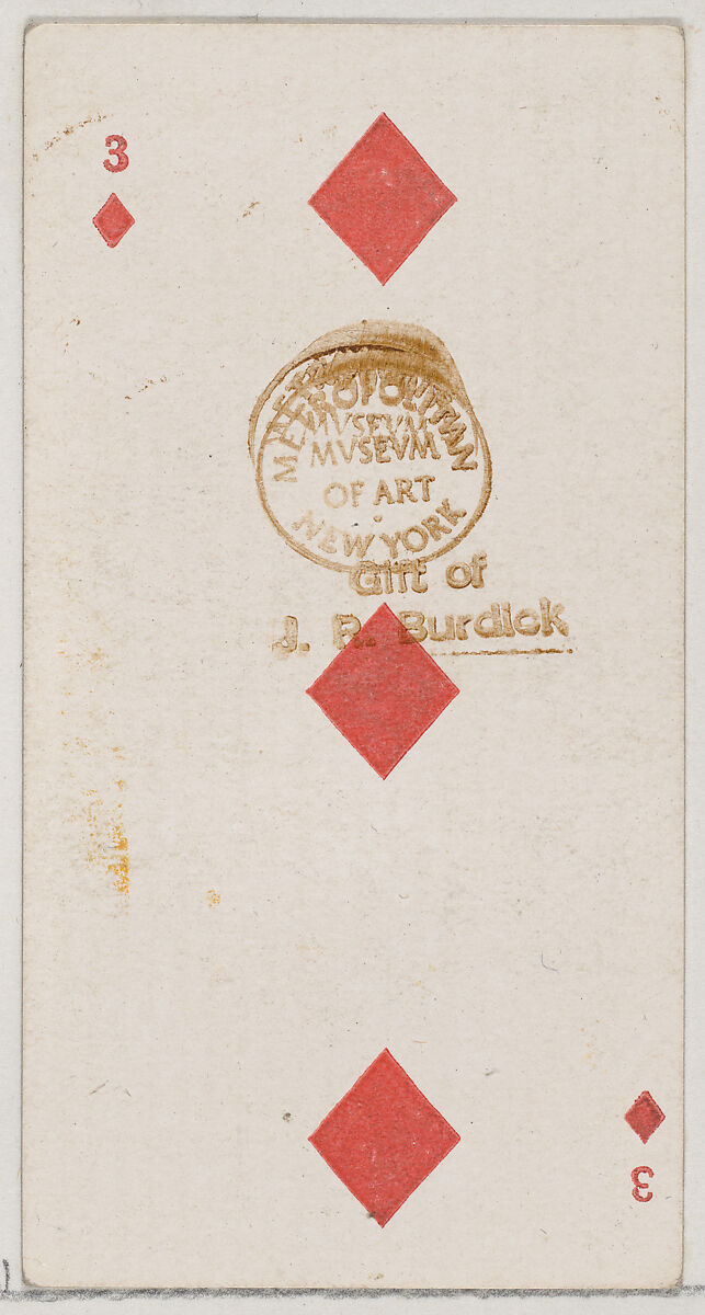- Title: Three Diamonds (red), from the Playing Cards series (N84) for Duke brand cigarettes