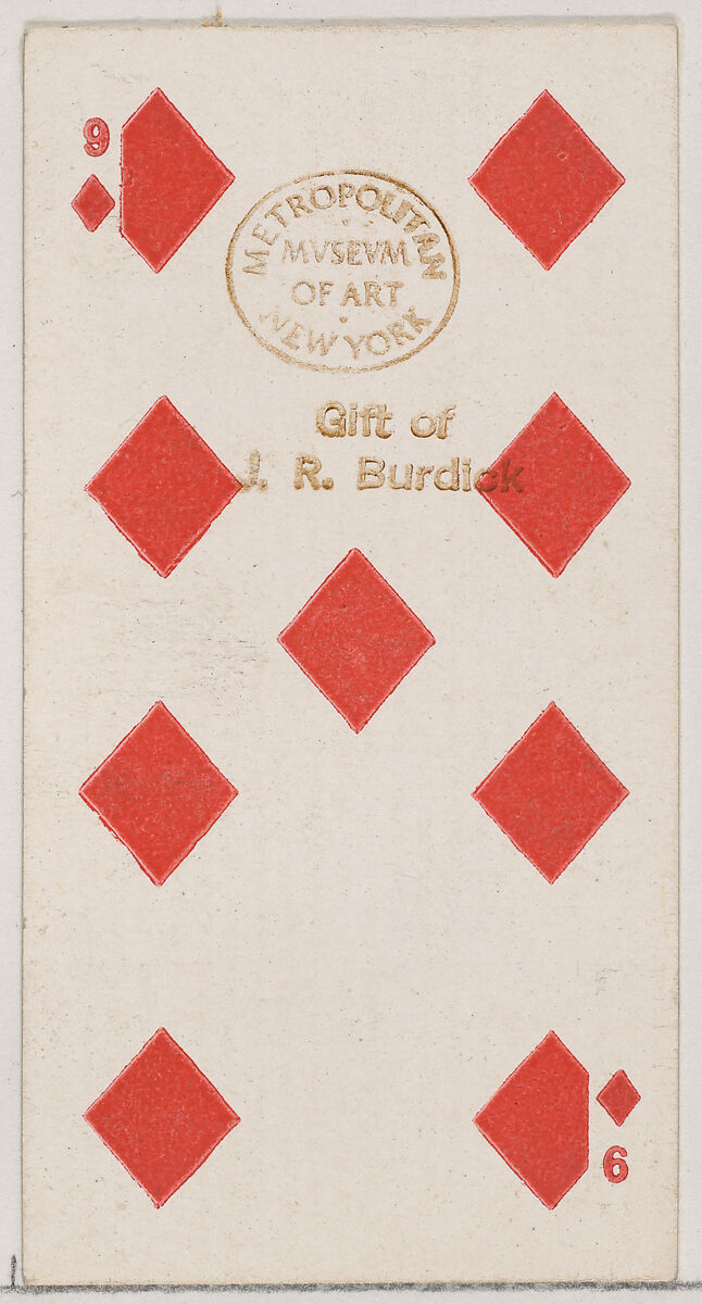 - Title: Nine Diamonds (red), from the Playing Cards series (N84) for Duke brand cigarettes