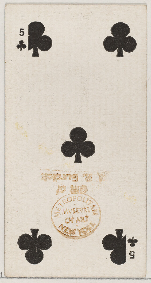 - Title: Five Clubs (black), from the Playing Cards series (N84) for Duke brand cigarettes