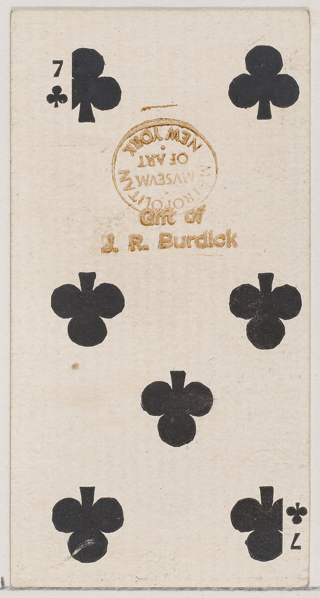 - Title: Seven Clubs (black), from the Playing Cards series (N84) for Duke brand cigarettes