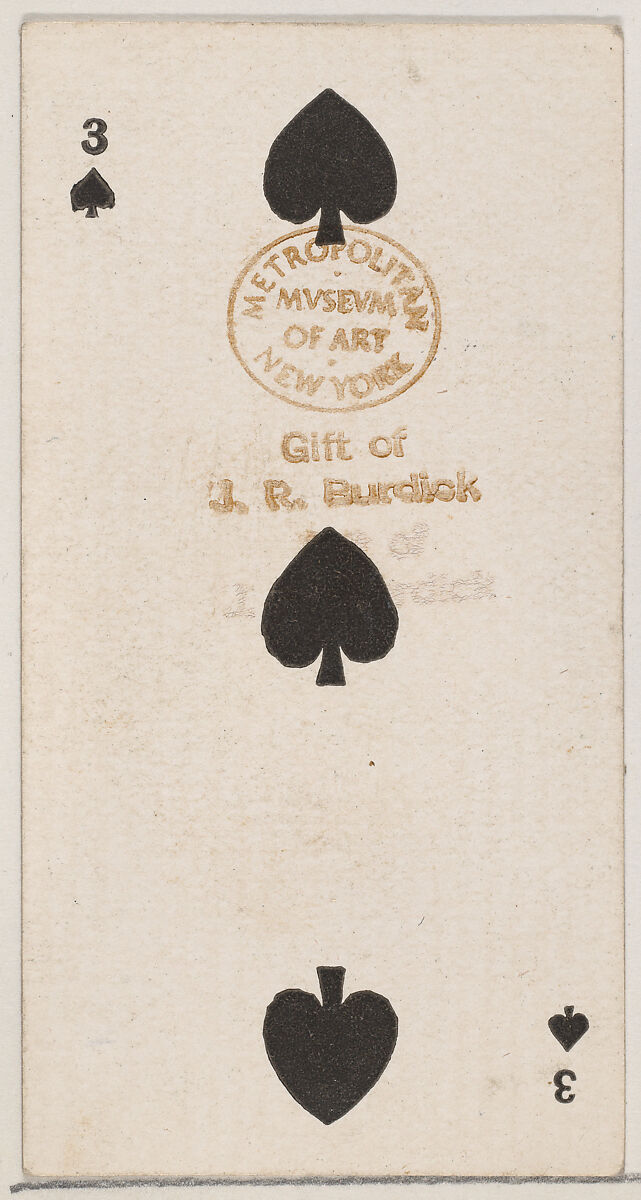 - Title: Three Spades (black), from the Playing Cards series (N84) for Duke brand cigarettes