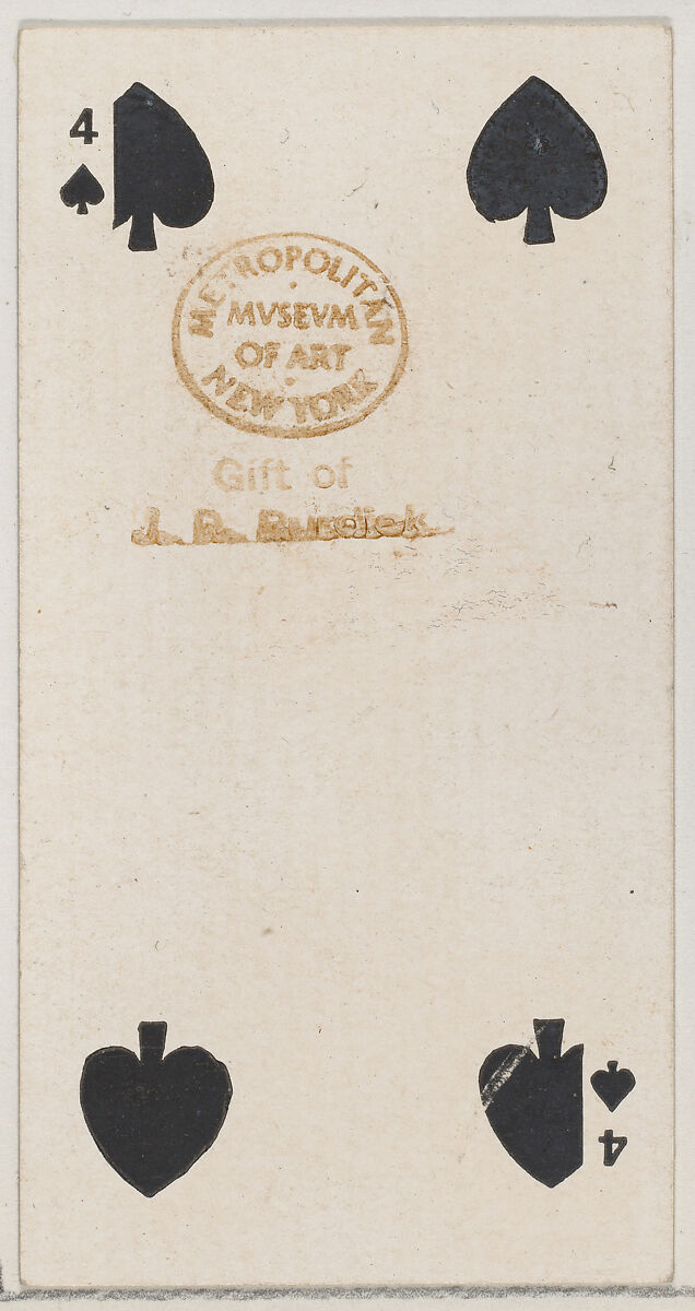 - Title: Four Spades (black), from the Playing Cards series (N84) for Duke brand cigarettes